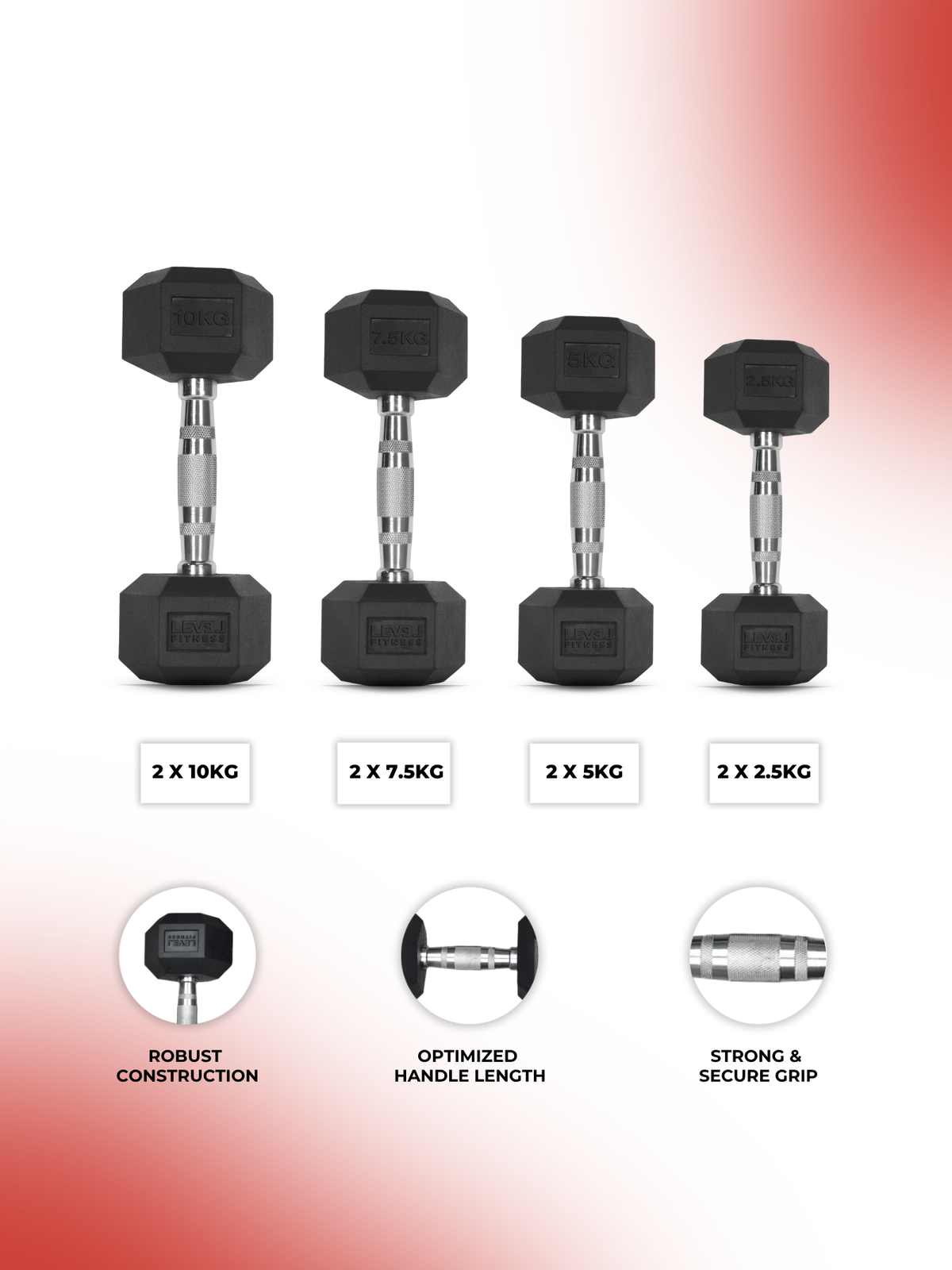 Combo | Level Fitness 2.5Kg to 10 Kg Dumbbell Set