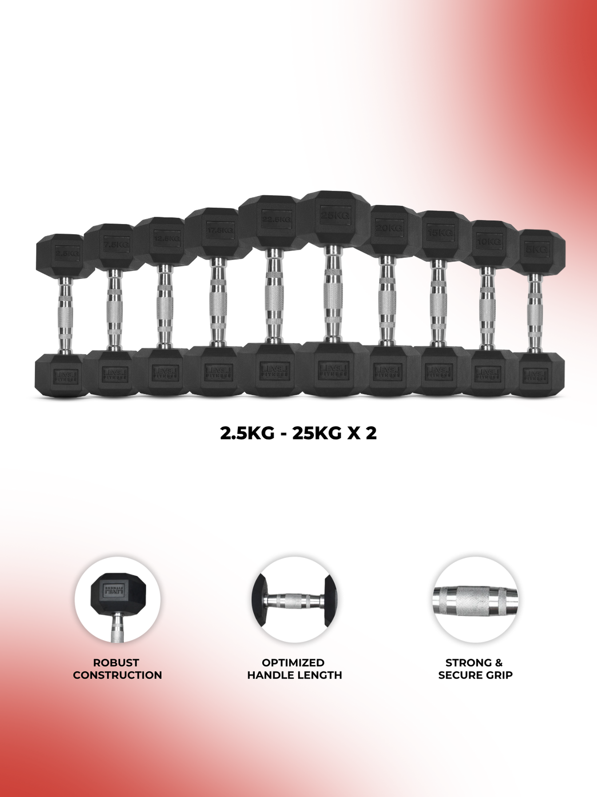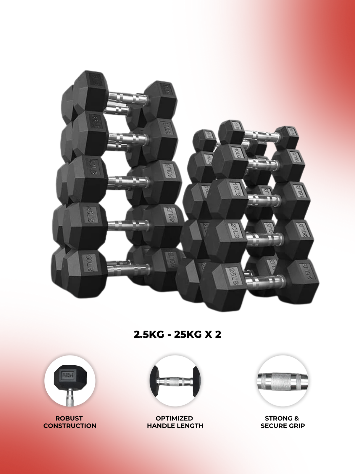 Combo | Level Fitness 2.5 Kg to 25 Kg Dumbbell Set