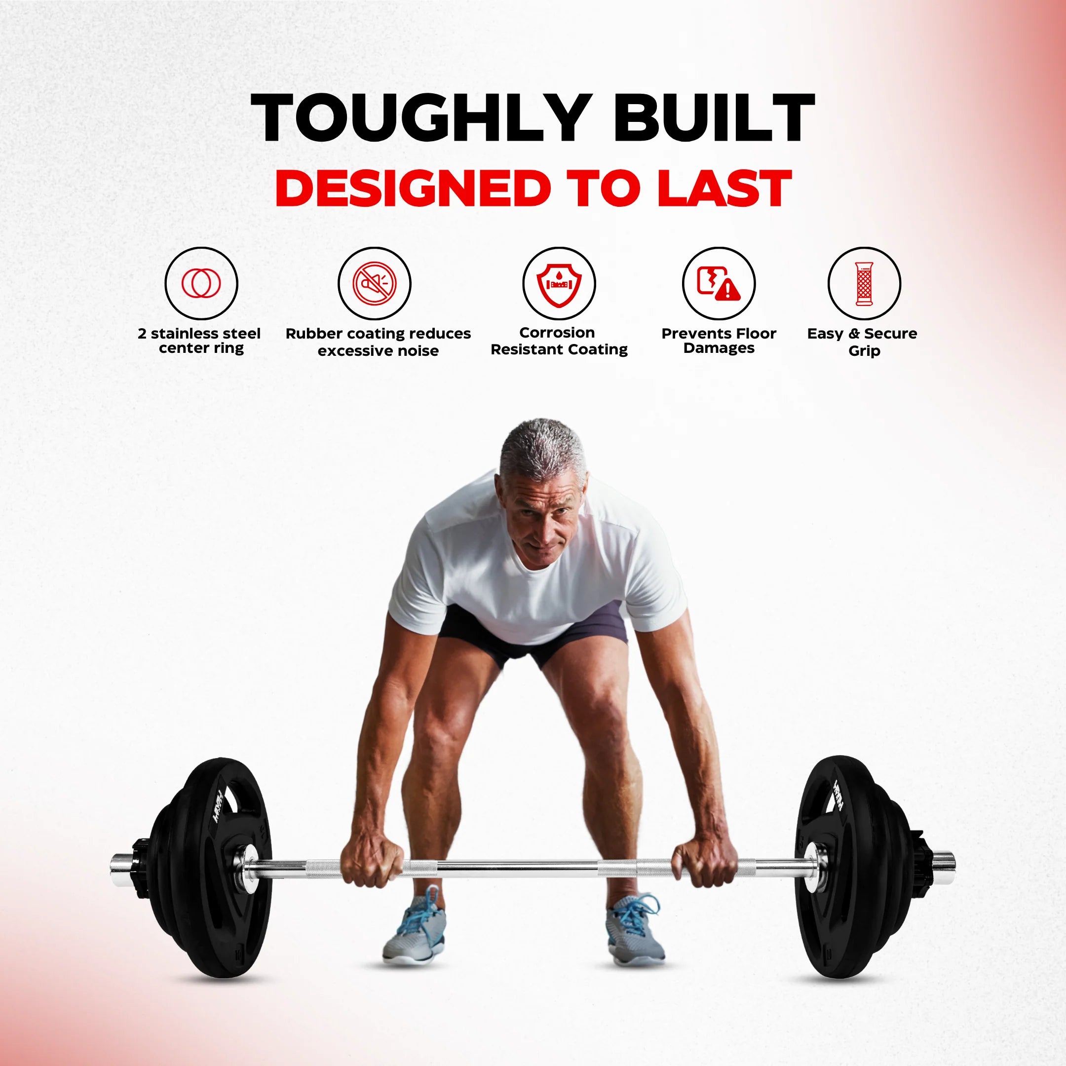 Combo 42 kg Body Pump Set | Level Fitness Tri Grip Plates With 4Ft Barbell