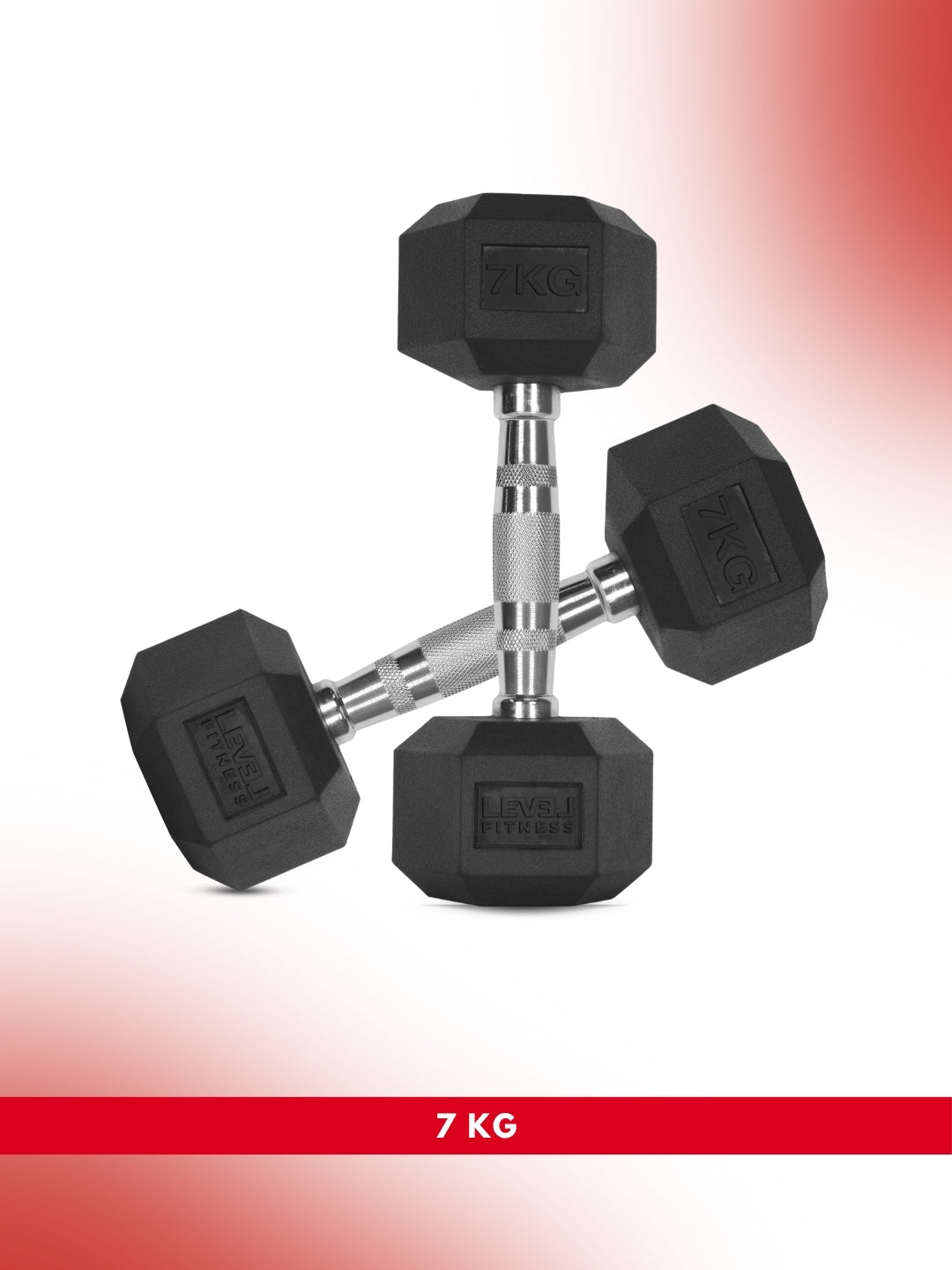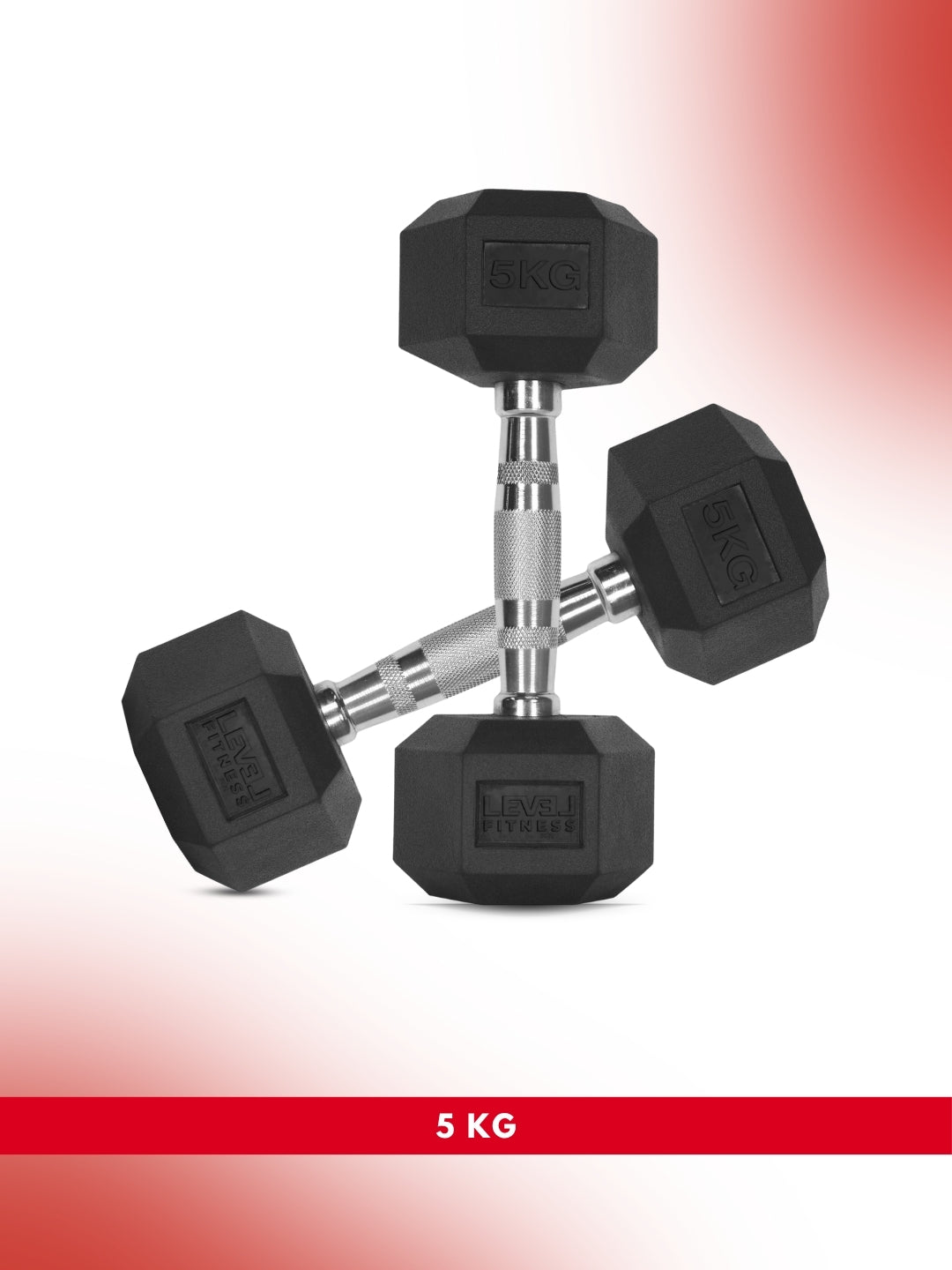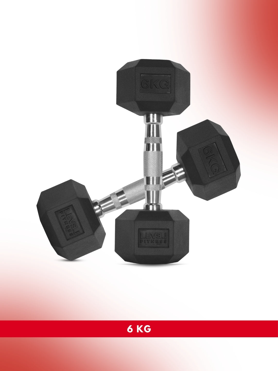 Level Fitness 1Kg -25Kg Rubber Hex Dumbbells in Kilogram | Sold In Pairs (2 pcs) | Tough & Durable | Chrome-Plated Ergonomic Handle