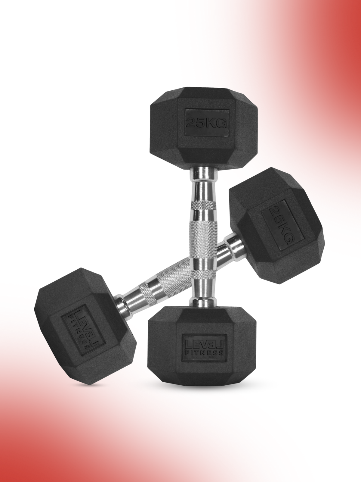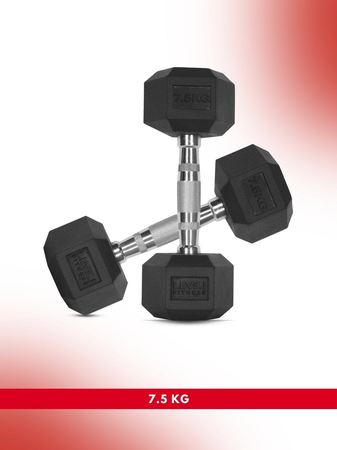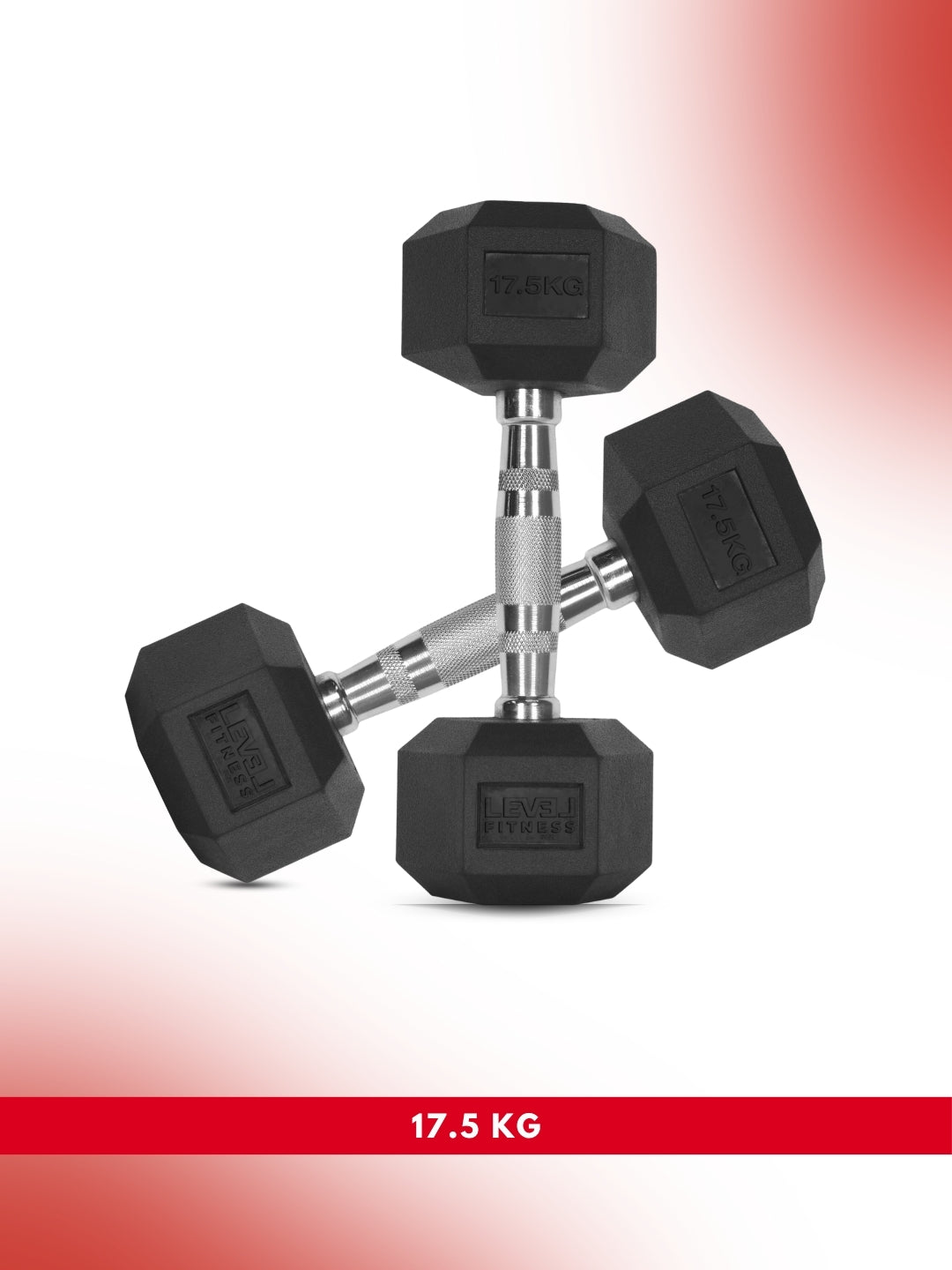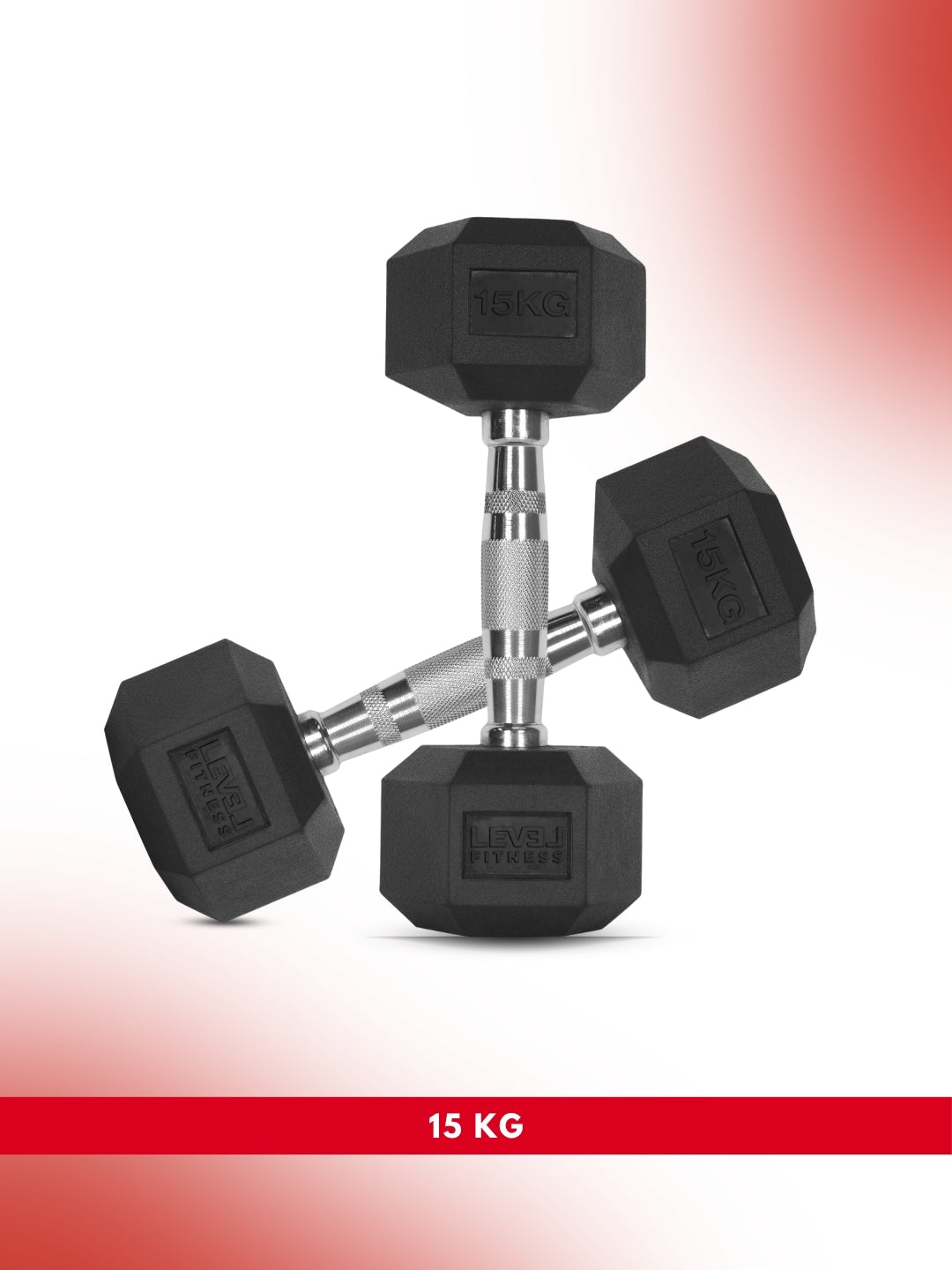 Level Fitness 1Kg -25Kg Rubber Hex Dumbbells in Kilogram | Sold In Pairs (2 pcs) | Tough & Durable | Chrome-Plated Ergonomic Handle